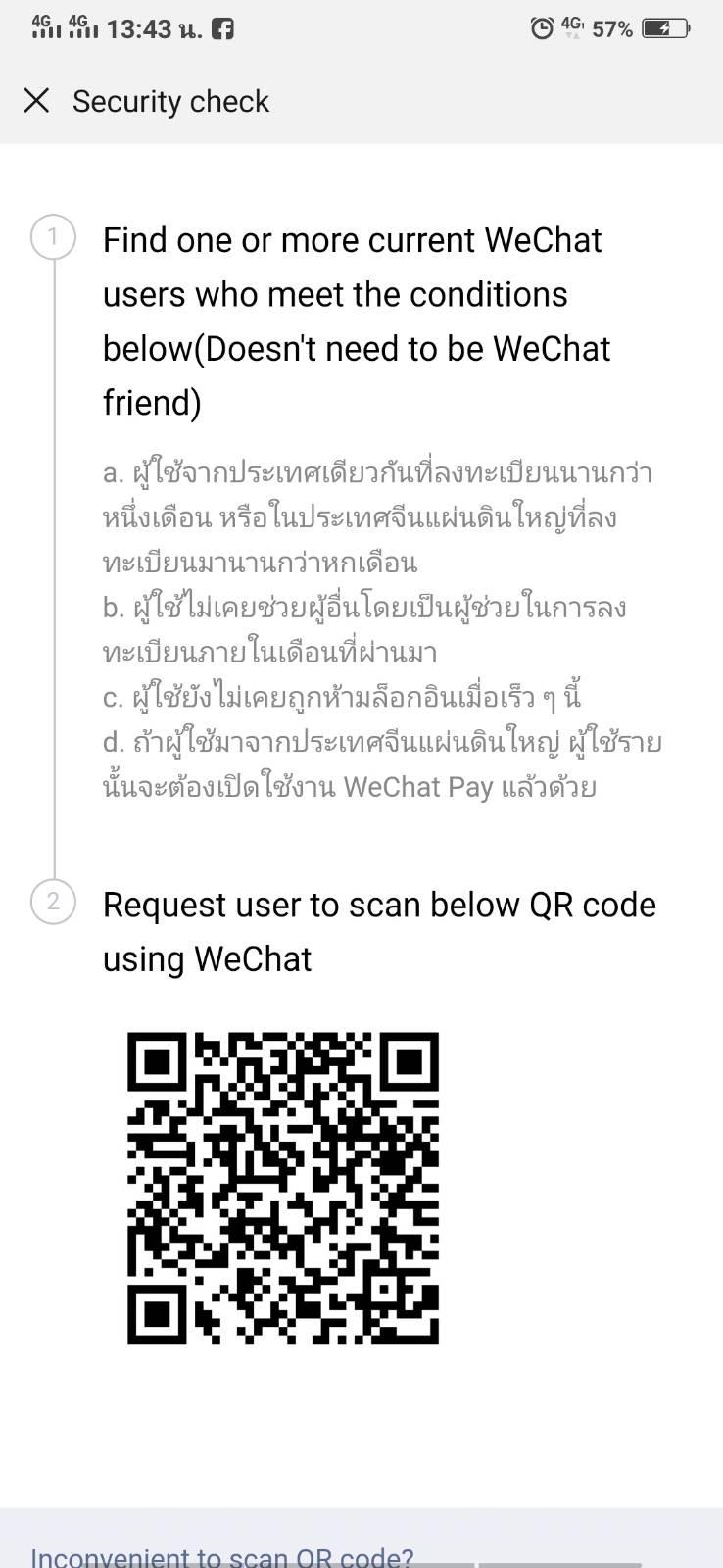 สมัคร wechat ไม่ได้ ช่วยยืนยันหน่อยค่ะ