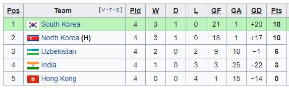 และเกาหลีเหนือก็จับติ้วไปอยู่กลุ่มเดียวกับเกาหลีใต้ ทั้งสองทีมต้องแข่งกันถล่มประตูทีมร่วมกลุ่ม