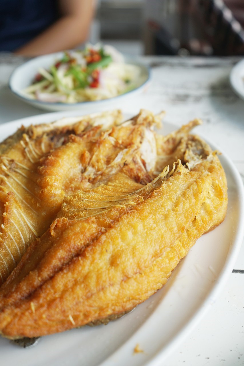 ปลากะพงทอดน้ำปลา - คือปลาสดมากอ่ ทอดมากรอบนอกนุ่มใน แต่ตัวน้ำปลาน่าจะมีเยอะอีกหน่อย อิอิ