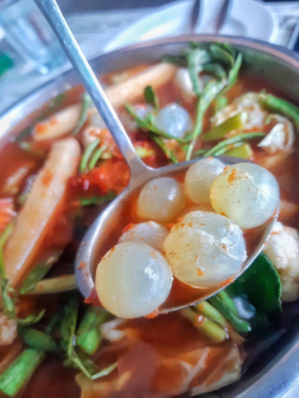 แกงส้มผักรวมไข่ปลาเรียวเซียว - คือปกติก้อไม่ค่อยชอบกินไข่ปลาเพราะรู้สึกว่ามันคาว แต่ที่นี่กินแล้วอร่อยดี เคี้ยวแล้วมันจะหนึบๆเหมือนกินชาไข่มุก 555 รอบนี้ลืมสั่งเค้าว่าเอาแต่ชะอมทอดหรือผักกะกล่ำดอกอะไรพวกนั้น เค้าใส่กระเฉดมาซึ่งเราไม่กิน อิอิ