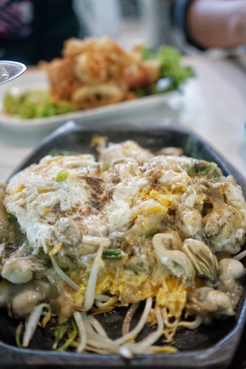 เริ่มด้วยหอยนางรมออส่วนกะทะร้อน - ก้ออร่อยอยู่นะ แป้งเหนียวๆกำลังดี หอยตัวไม่ใหญ่มาก รวมๆก้อโอเค