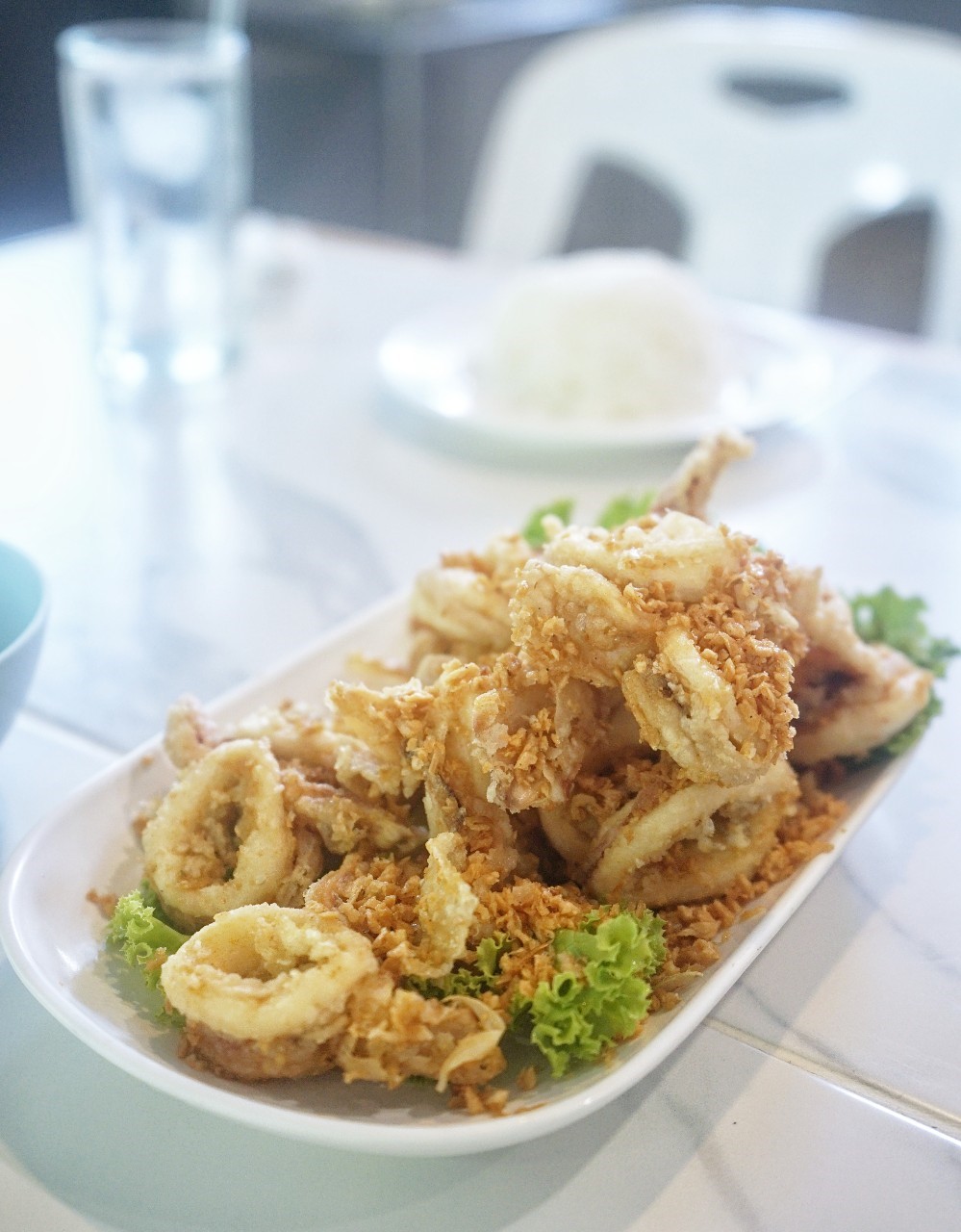 ปลาหมึกทอดกระเทียม - ปลาหมึกสดดีนะ แต่ติอย่างเดียวเค้าไม่ได้เอาแง่งๆสีใสๆในตัวปลาหมึกออก 555 เสียเวลาแงะ