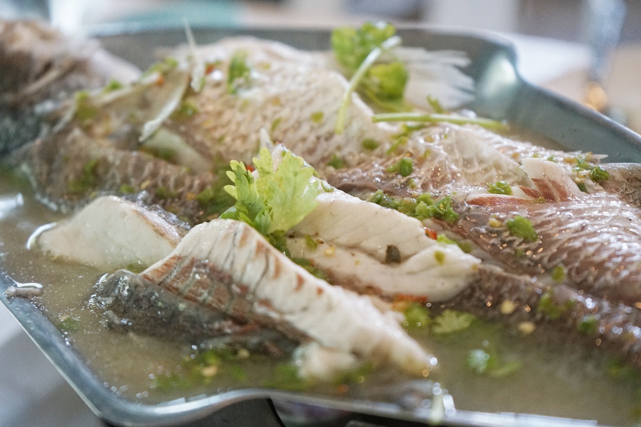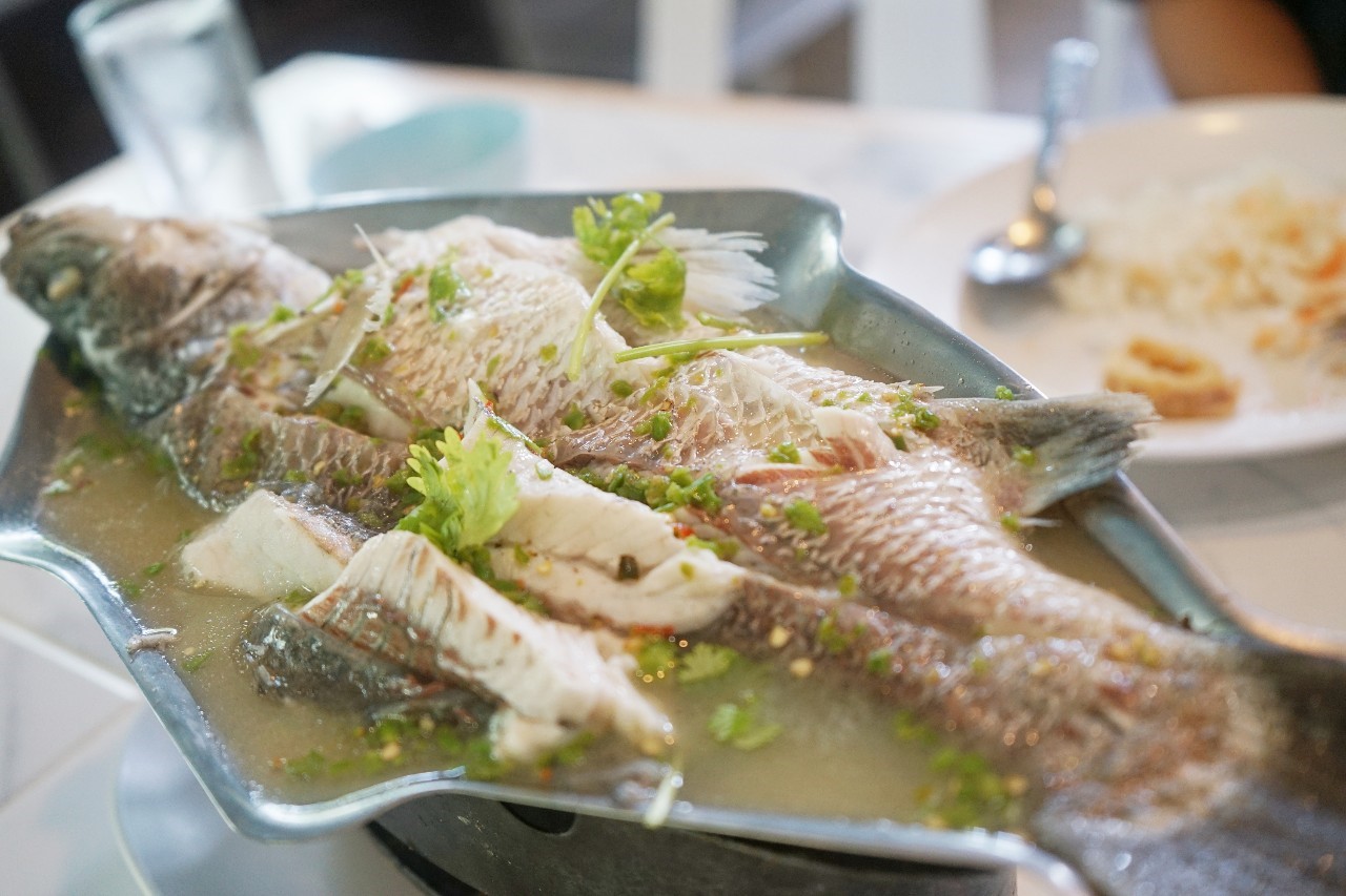 เมนูสุดท้ายปลากะพงนึ่งมะนาว - เมนูนี้ความอร่อยอยู่ที่ปลาคือโคดสดอ่ะ เนื้อมาเป็นก้อนแถวตัวใหญ่ดี ส่วนน้ำซุปจะออกแนวเปรี้ยวนิดนึง ไม่เผ็ดมาก...แต่ก้อแทะกันจนแมวร้องไห้ 555