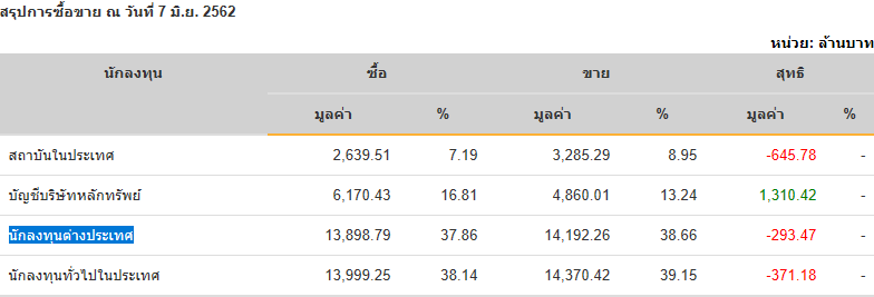 Sinthorn Summary 7/6/2562 : ต่างชาติขายสุทธิ -293.47 ลบ.