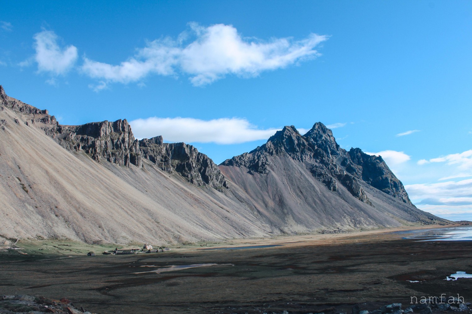 ที่แรกของวันนี้ Vesturhorn Mountain (ภูเขาเวสตราฮอร์น) 64.264556, -14.972616