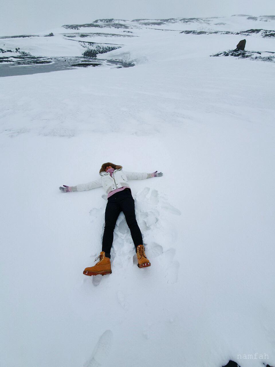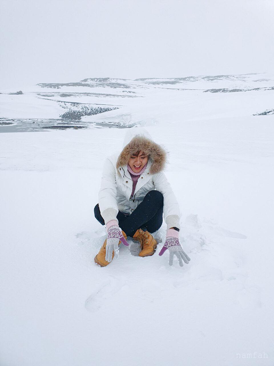 แต่ด้วยความที่ฝนรินเบาๆ หัวก็เปียก หน้าม้าที่ตัดมาเพื่อมาเที่ยวไอซ์แลนด์ ก็แตกกระเจิง แหกกันไปคนละทิศละทาง ทั้งลมทั้งฝน