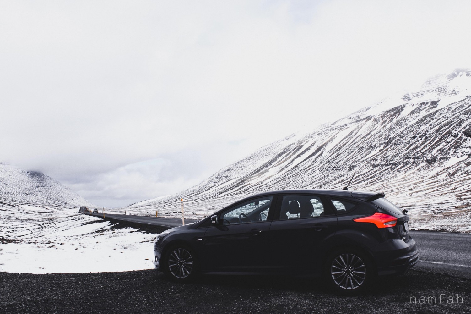 จากเมือง Egilsstaoir ไปที่ Seydisfjordur 27 กิโลเมตร เป็นทางขึ้นเขา เขาก็เป็นภูเขาหิมะทุกคนน