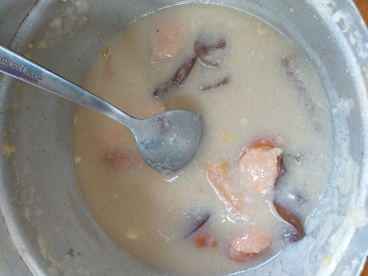 พี่สะใภ้เคี่ยวน้ำแกงกระดูกหมูข้ามคืน ทีแรกจะทำข้าวต้ม แต่ทริปนี้มีสว. หลายคน เลยแปลงเมนูเป็นโจ๊กเลยละกัน เคี่ยวกระดูกหมู ใส่สามเกลอ กุ้งแห้ง ขึ้นฉ่าย ตังฉ่าย โร