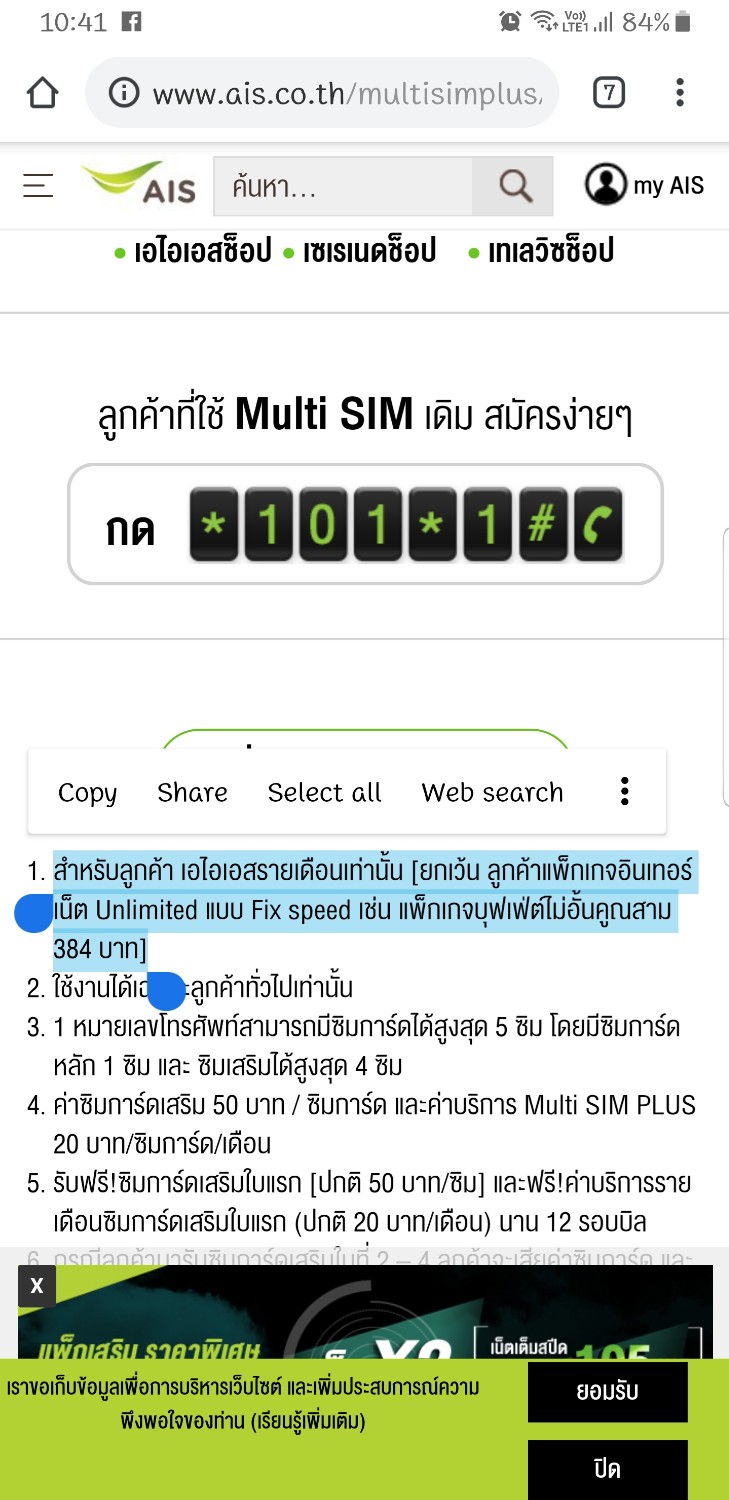 เงื่อนไขการทำ multisim Plus AIS ใหม่