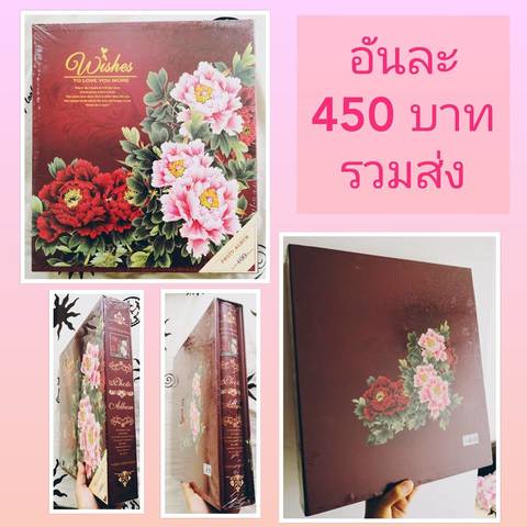 อัลบั้มรูปสอด ลายดอกกุหลาบ สีแดงอมชมพู ขนาด 400 รูป ราคา 450 บาท รวมส่ง
