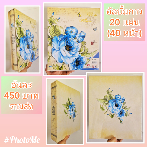 อัลบั้มรูปกาว 20 แผ่น (40หน้า) ลายดอกไม้ โทนสีฟ้าม่วง ราคา 420 บาท รวมส่ง