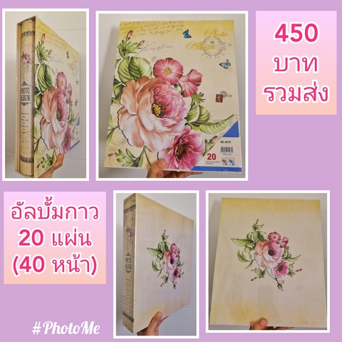 อัลบั้มรูปกาว 20 แผ่น (40หน้า) ลายดอกไม้สีชมพู พื้นหลังสีครีม ราคา 450 บาท รวมส่ง