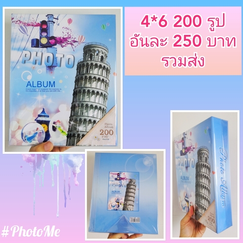อัลบั้มรูปสอด ลายหอเอน สีฟ้าพาสเทล 200 รูป ราคา 250 บาท รวมส่ง