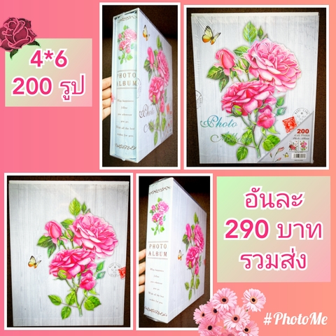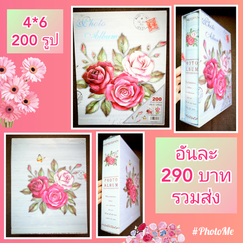 อัลบั้มรูปสอด ลายดอกกุหลาบ สีชมพูโทนอ่อน 200 รูป ราคา 290 บาท รวมส่ง