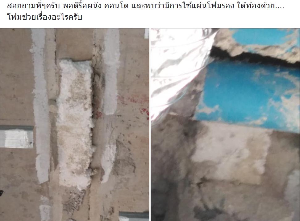 สอบถามพี่ๆครับ พอดีรื้อผนัง คอนโด และพบว่ามีการใช้แผ่นโฟมรอง ใต้ท้องด้วย.... โฟมช่วยเรื่องอะไรครับ