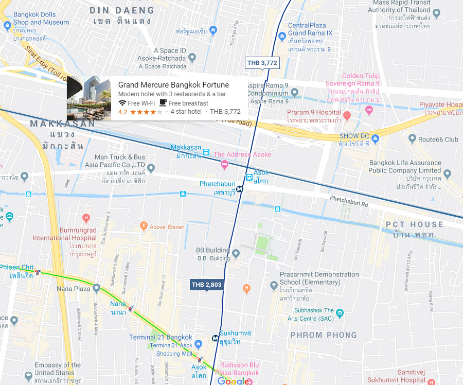 การเดินทางมาที่ห้องอาหาร AGEHAN JAPANESE RESTAURANT สะดวกมากครับ ถ้ามาเองจะใช้รถไฟฟ้าใต้ดิน MRT ลงสถานีพระรามเก้า แล้วเดินเข้าศูนย์การค้าฟอร์จูนทะลุเข้าประตูฝั่งโรงแรมได้เลยครับ หรือใครนำรถมาก็จอดที่ลานจอดรถของโรงแรมได้เลย