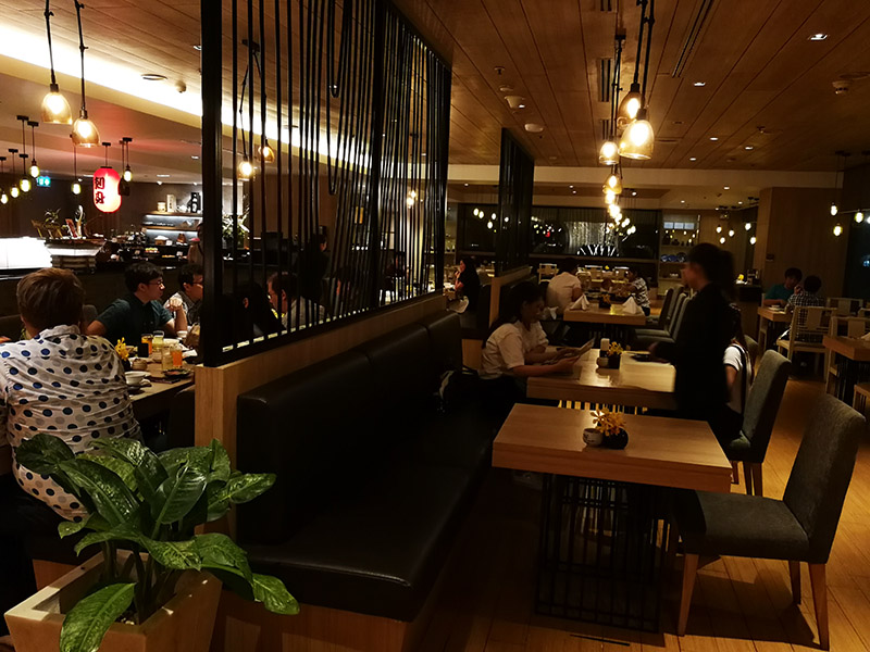บรรยากาศภายในร้านครับ บอกเลยว่าหรูหราตามสไตล์โรงแรม และแฝงไปด้วยกลิ่นอายการตกแต่งแบบญี่ปุ่นครับ ที่นี่จะมีทั้งโต๊ะแบบปกติ และห้องรับประทานอาหารส่วนตัวแบบมีประตูปิดให้เราเลือกใช้บริการได้ด้วยนะครับ แต่การจองห้องรับประทานอาหารส่วนตัวอาจจะมีจำนวนผู้มารับประทานอาหารหลายคนครับ หรือถ้าจำนวนไม่ถึง ทางร้านอาจจะมีค่าบริการเพิ่มเติมเล็กน้อยครับ