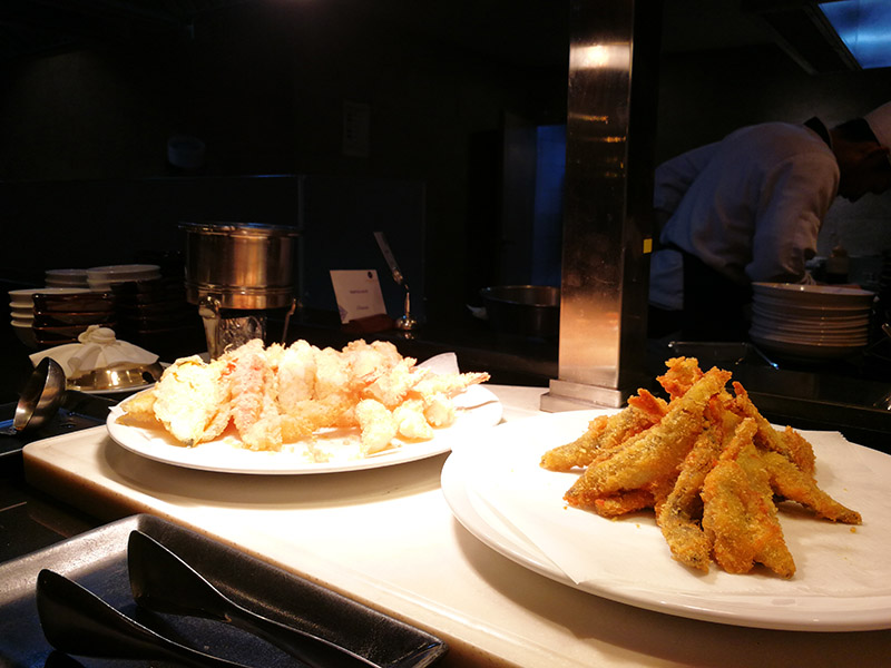 ถัดมาเป็นโซนเทมปุระ จะมีบางเมนูที่ทอดเตรียมไว้ให้ครับ ซึ่งจะแตกต่างกันไปแต่ละวัน วันนี้มีกุ้ง ผักต่าง ๆ และปลาไข่ทอด ซึ่งเราสามารถสั่งเพิ่มเองกับพนักงานได้ครับเนื่องจาก เทมปุระ มีให้เลือกสั่งอยู่ในเมนูอยู่แล้ว (สั่งที่โต๊ะทอดใหม่ ๆ อร่อยกว่าหยิบเอาจากเคาน์เตอร์ด้วยครับ)