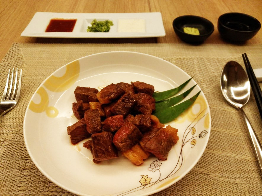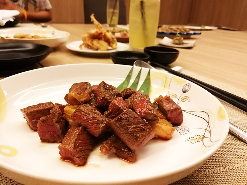 จานแรกที่ได้มาก็คือเนื้อวากิวโกเบ มาร้อน ๆ หอมฉุยเลยครับ จานนี้ผมไม่ได้ทานเพราะไม่ทานเนื้อวัว แต่เพื่อนที่ไปด้วยกันเป็นสายเนื้อบอกว่านุ่มดี ไม่สุกมากไป ไม่เหนียวครับ