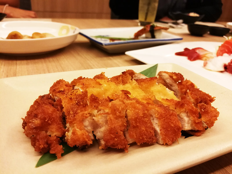 จานต่อมาเป็นของผมเองครับ เพราะชอบอะไรที่ธรรมดาครับ นั่นคือ หมูชุบแป้งทอด กินแล้วอร่อยดีครับ กรอบนอกนุ่มใน แป้งกรอบไม่เลี่ยน แอบมีชีสหน่อย ๆ ใต้แป้งด้วย แต่ไม่ค่อยเยิ้มเท่าไร