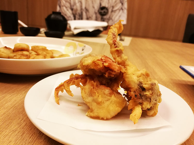 จานนี้เป็นปูนิ่มเทมปุระครับ เพื่อนที่มาด้วยกันประทับใจจานนี้มาก ปูที่นำมาเสิร์ฟชิ้นใหญ่พอสมควรเลย ส่วนที่นำมาเสิร์ฟเป็นกรรเชียงปู แถมเนื้อแน่นดีด้วยครับ มาพร้อมกับซอสเทมปุระกลมกล่อม กินแล้วอร่อยเลยครับ