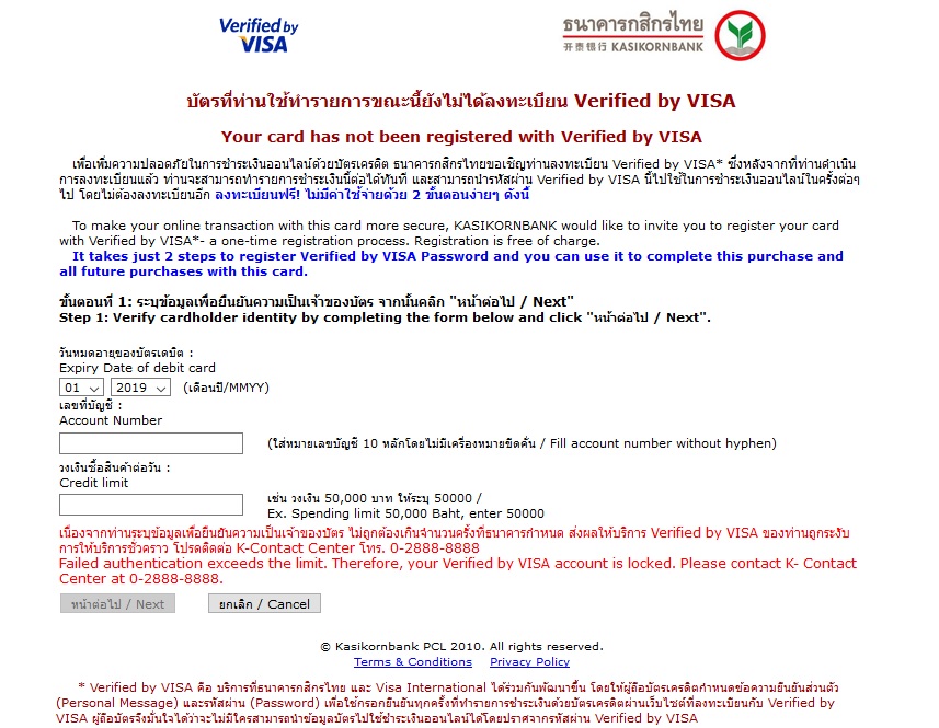 ผมได้สมัครเว็บ Skrill และทำการผูกบัตรเดบิตของกสิกร และได้ทำการ Verified by VISA สำหรับบัตรเดบิต เรียบร้อยแล้ว