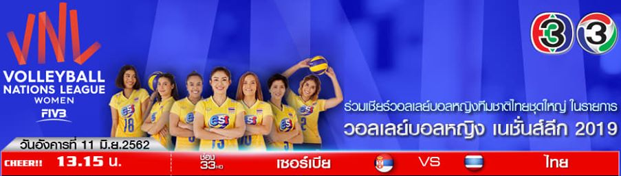 <<เชียร์สด!! คู่ [[“ทีมสาวไทย”#V&#“Serbia”]] {{วอลเลย์บอลหญิง VNL 2019@สนาม Musashino Forest Sport, โตเกียว ญี่ปุ่น}}>>