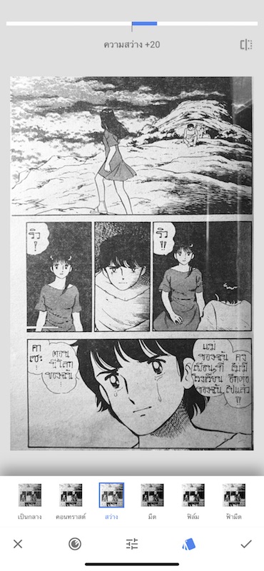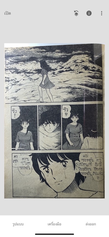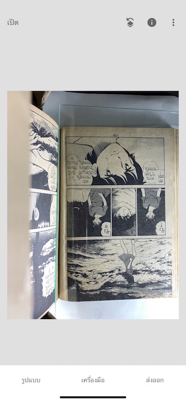 ถ้าหากใครได้ลองจับภาพด้วย book scanner แบบบ้านๆ จากตอนที่แล้วจะพบว่าภาพที่ได้มาบางทีมันจะกลับหัว บางทีก็เอียงๆ บางทีก็มืดบางส่วน ทั้งนี้เป็นเรื่องธรรมดาของการถ่ายภาพมาเป็นพันรูปมันต้องมีรูปที่ไม่ได้อย่างใจบ้างแหละ รูปพวกนี้เวลานำไปทำหนังสือจะได้ภาพที่ไม่สวยงาม เราเลยต้องใช้แอพ Snapseed จัดการมันซะก่อน ผมจะยกตัวอย่างมาให้ดูภาพนึงนะครับ