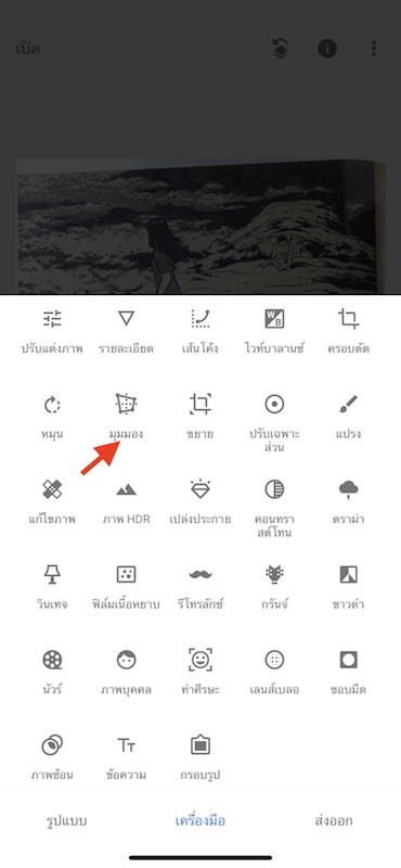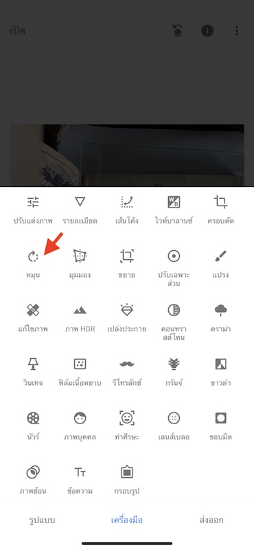 ภาพเมื่อนำเข้ามาในแอพ Snapseedจะเห็นว่ามันถูกถ่ายมากลับหัวอยู่แบบนี้