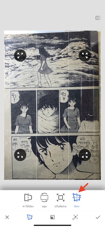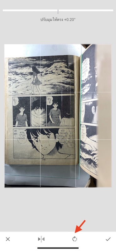 ใช้คำสั่ง Crop ตัดเอาแต่ส่วนที่เป็นหน้าหนังสือมา แต่จะเห็นว่าภาพยังดูผิดสัดส่วนอยู่ครับ