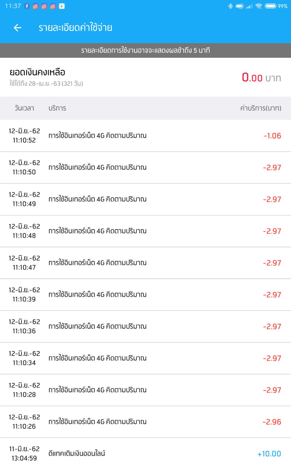 คือ พอดีมือถือไวฟายหลุด บวกกับเผลอเปิดดาต้าไว้ เเต่ตอนที่ไวฟายหลุดคือกำลังเล่นมือถืออยู่ ระยะเวลาไม่ถึง 1 นาที อยู่ๆก็มีข้อความเด้งเข้าติดๆ 3 ข้อความ เลยเปิดดูปรากฏว่า ข้อความเเรก คุณใช้เน็ตไปเเล้ว 10 บาท ข้อความถัดไป คุณใช้เน็ตไปแล้ว 20 บาท เลยรีบปิดดาต้า เเล้วเข้าแอพดีเเทค ไปเช็คข้อมูลว่าทำไมถึงคิด 20 บาท ปรากฎว่า มันเริ่มคิดเงินครั้งแรกตอนเวลา 11:10:26 น. ไปจนถึงเวลา 11:10:52 น. (ระยะเวลา 26 วินาที) แต่ดีเเทคคิดเงินไป 20 บาท ซึ่งตรงกันข้ามกับความเป็นจริงมาก คิดเงินแบบวินาที แบบนี้เข้าค่ายโกงหรือป่าว เพราะตอนที่เล่นมือถืออยู่ เปิดเบราเซอร์กูเกิ้ลอยู่ และปกติค่าเน็ตส่วนเกินคิดแบบนาทีนิ ทำไมถึงหักเยอะแบบนี้