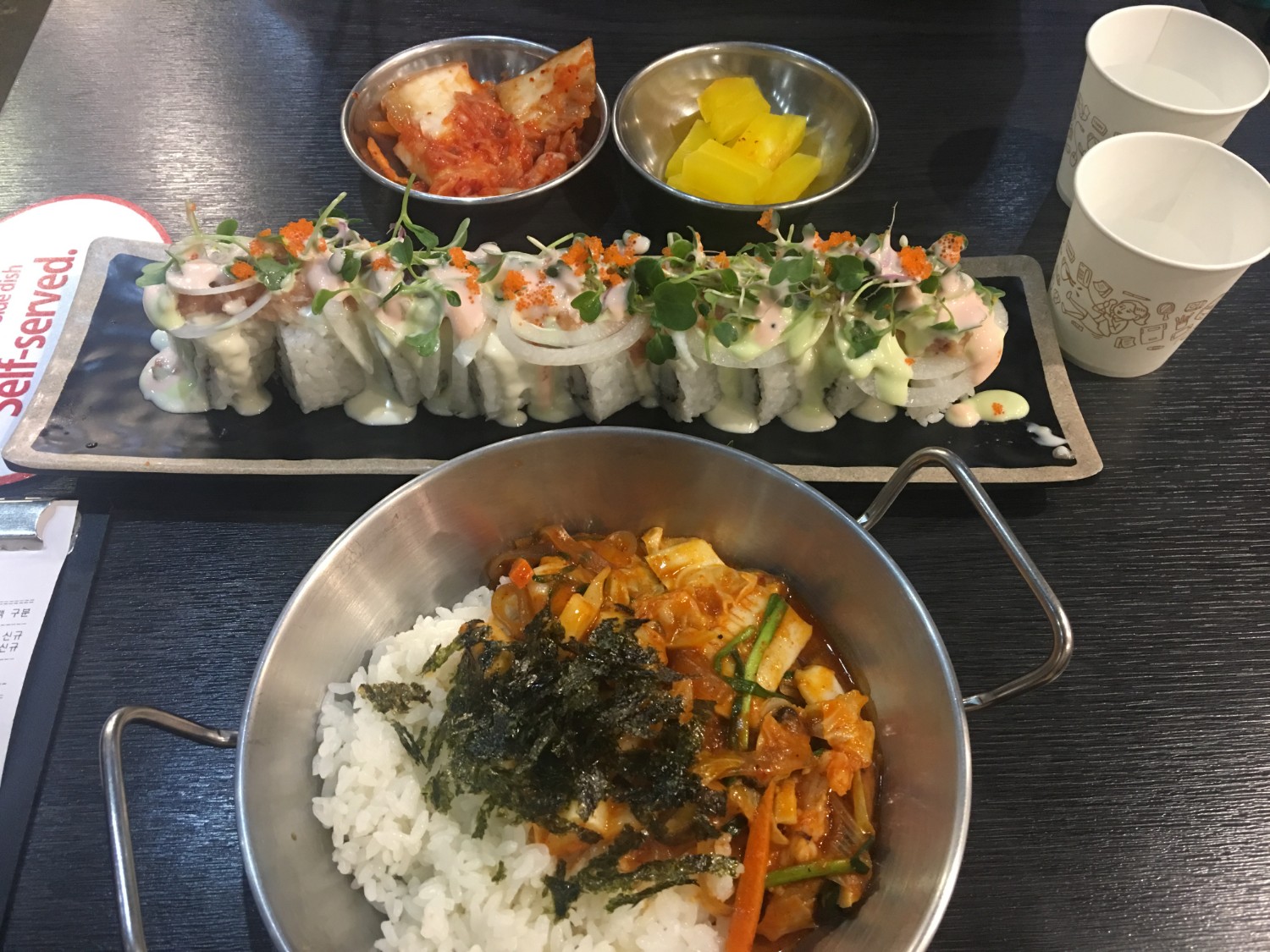 อาหารเกาหลีมื้อแรกที่ไปถึง จืดได้อีก ขอบคุณไกด์ที่ถือน้ำจิ้มสุกี้มา