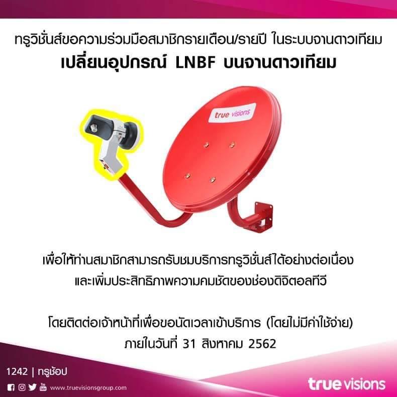 สอบถามเรื่องการเปลี่ยนหัว LNB เป็น Universal กล่อง Truevision รวมอยู่ในแพคเกจ Internet อยากแจ้งทาง True ให้เข้ามาเปลี่ยนหัว LNB ให้ครับ