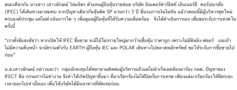 IFEC มีคนขัดขวางไม่ให้ปลด SP