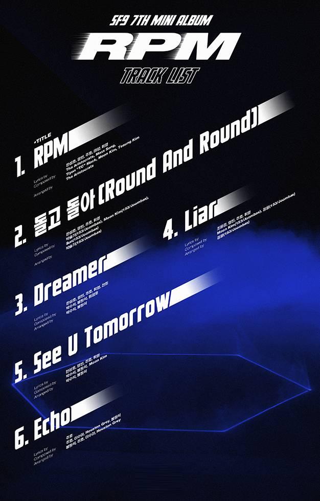 #1 RPM TITLE #2 돌고 돌아 (Round And Round) #3 Dreamer #4 Liar #5 See U Tomorrow #6 Echo