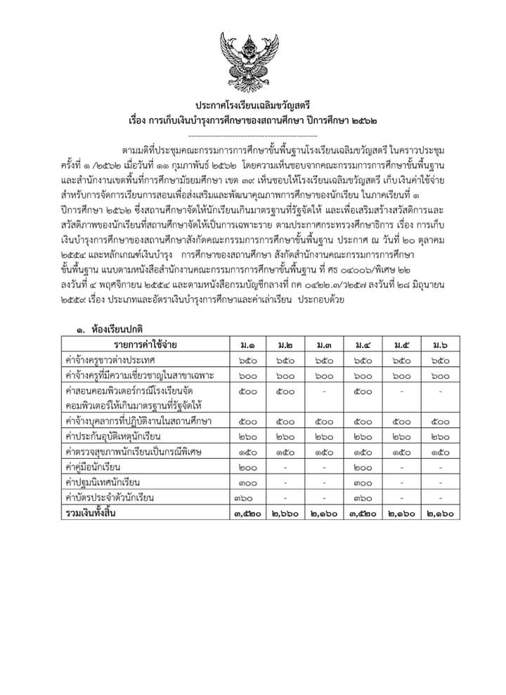 โรงเรียนเฉลิมขวัญที่พิษณุโลกมีสายไหนบ้างคะ?แต่ละห้องค่าเทอมเท่าไหร่บ้างคะ?
