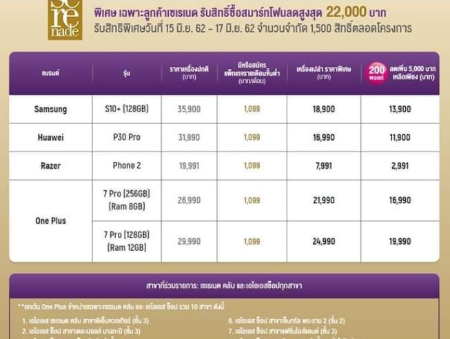 ไม่ทราบตอนนี้ AIS สามารถแจงได้มั๊ยครับว่า ยังมีสาขาไหนมีของเหลืออยู่ เพราะผมต้องการซื้อเครื่องเปล่าสิทธิเซเรเนทเหลือ 10,500 บาท แต่เช็คสาขาใน กทม. ไปจนถึงอยุธยา เขาบอกว่าของหมดและไม่มีกำหนดเข้า แต่โปร