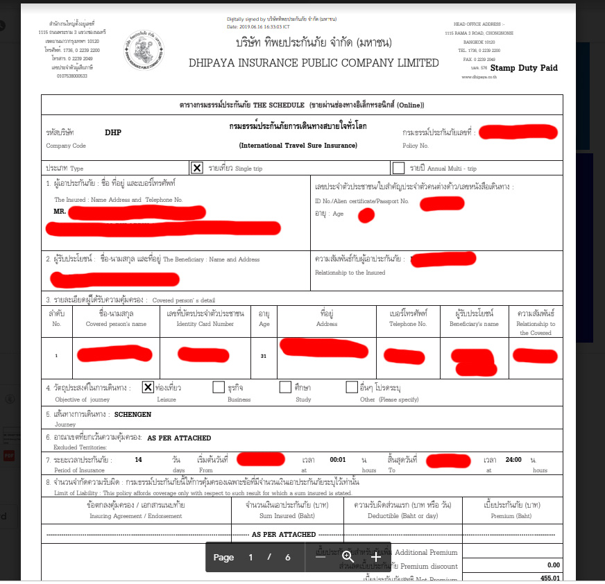 กรมธรรม์ประกันภัยเดินทางขอเชงเก้นวีซ่า แบบนี้ใช้ยื่นได้ไหมครับ