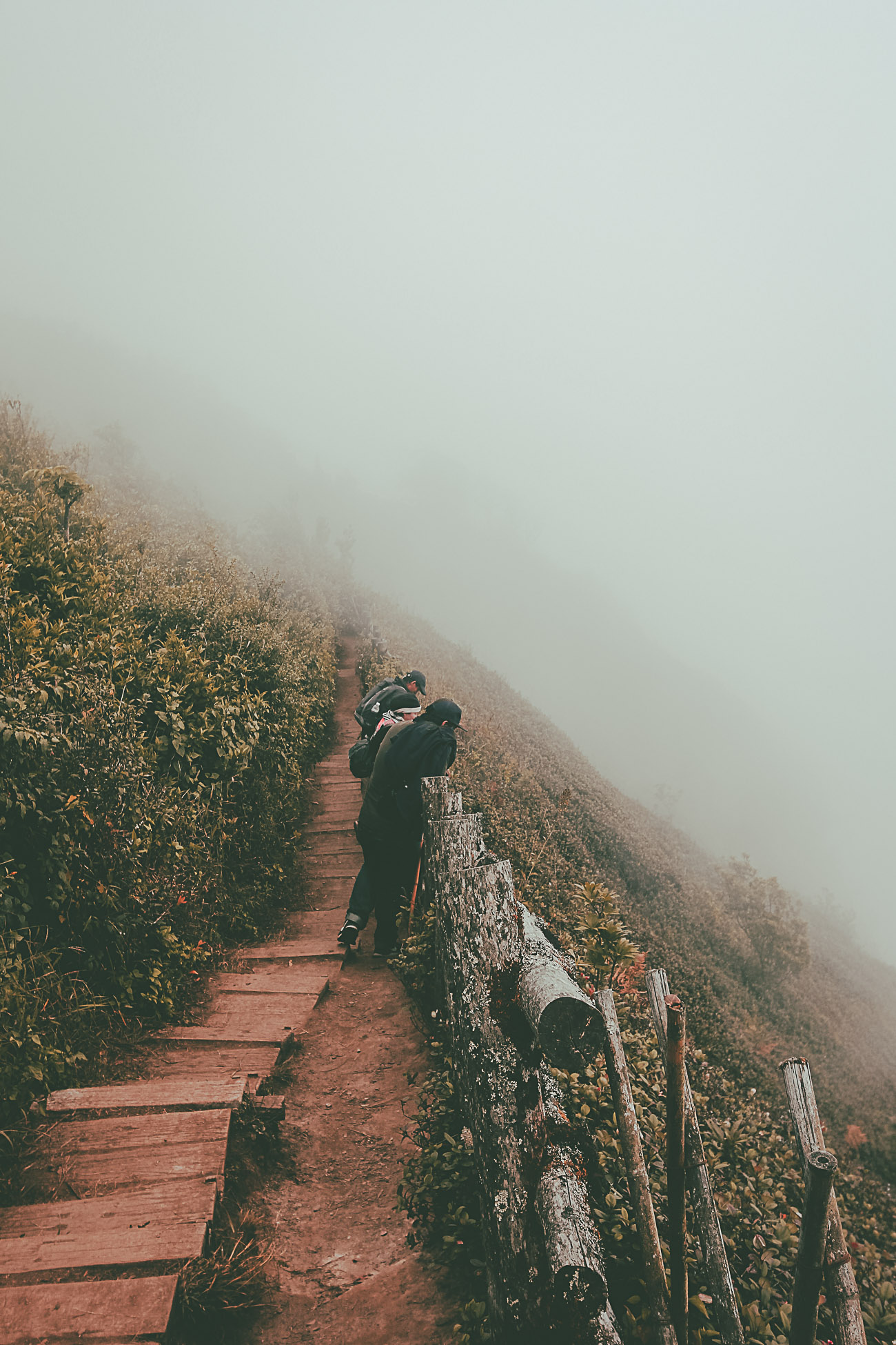 ผมวางเเผนจะเเวะสวนแกะแต่ดันปิดบริการซะงั้น ขับไปต่อจนมาถึงแยกระหว่างขึ้นไปผมขับไปอีกทางที่จะไปน้ำตกแม่ปาน จำได้ว่าขับไปไกลมากจนไปหมู่บ้านสันเกียงเลยเเวะถามผุ้คนดุ อ้าวว ผิดทาง เฮ้อออ ก็เลยได้กลับมาทางเดิมอาจเสียเวลาไป1-2ชม. เเต่ก็คุ้มที่หลงมาทางนี้เพราะข้างทางวิวสวยมาก เป็นที่นักท่องเที่ยวไม่ค่อยมากัน นั่งพักมองดูไร่นา สวนผัก เห็นทิวเขายาวสลับซับซ้อนกันสุดลูกหูลูกตา สูดอากาศเย็นเข้าไปเต็มปอดแล้วเริ่มออกเดินทางต่อ จนไปถึงยอดดอย ความรู้สึกตื่นเต้นที่สุดก็เริ่มขึ้นอีกครั้ง ผมมีความฝันว่าจะต้องมาเดินบนกิ่วแม่ปานให้ได้สักครั้ง วุ้ววมาถึงจนได้อากาศข้างบนเย็นมากๆ เย็นจนเเสบจมูกเลย เดินถ่ายรูป นั่งมองเมฆหมอกที่ลอยผ่านตัวไป ฟังเพลงที่ชอบ ลืมเรื่องกังวลใจ มันเหมือนกับเราหลุดจากความวุ่นวายต่างๆไปชั่วขณะ