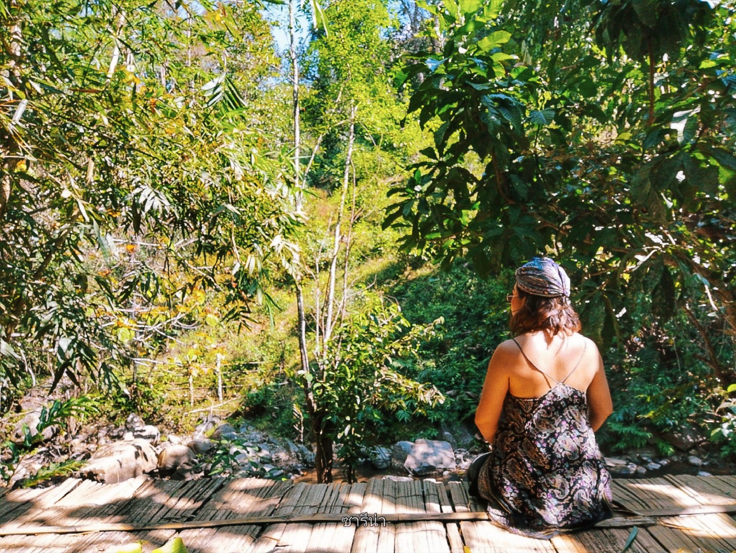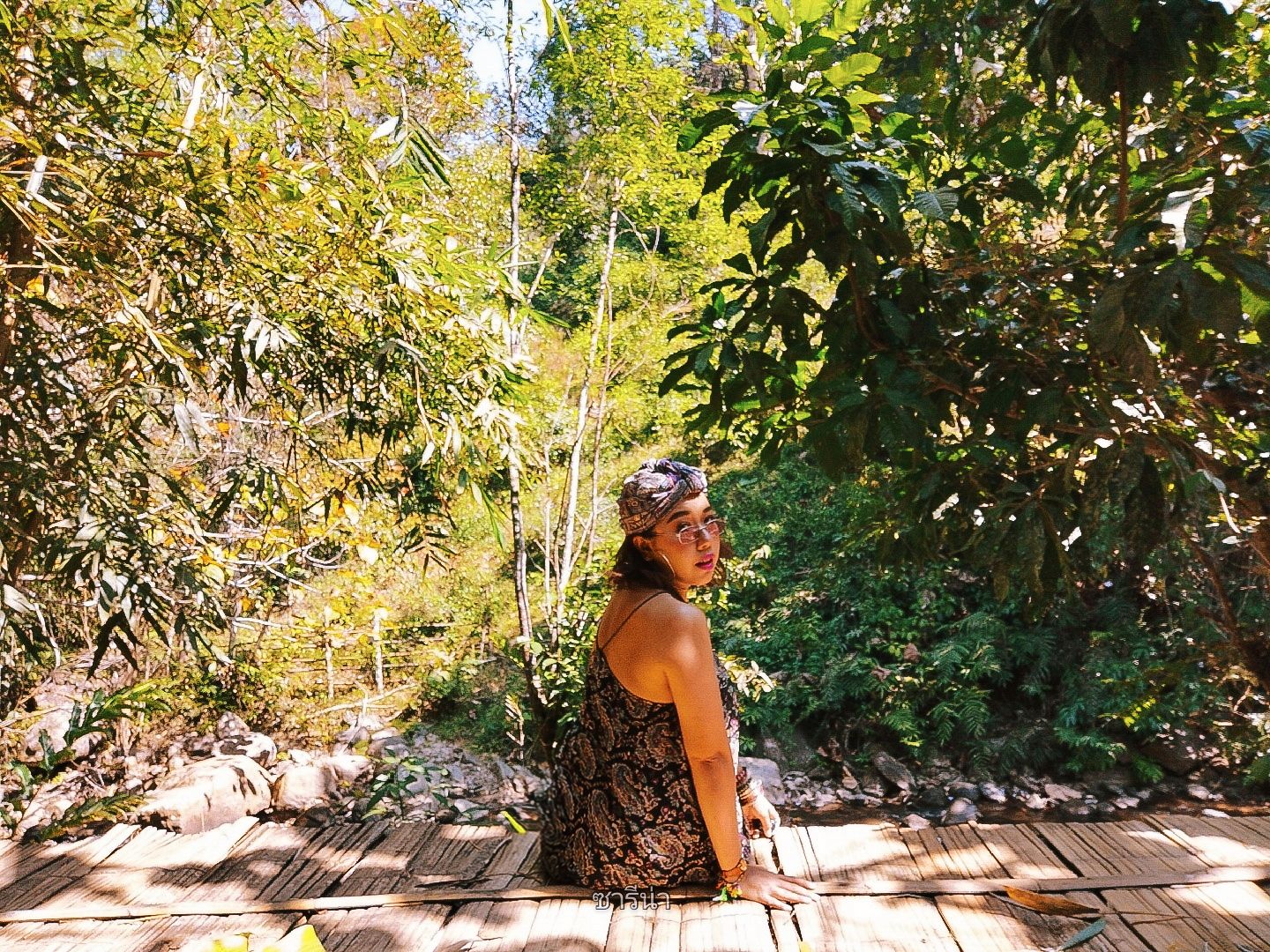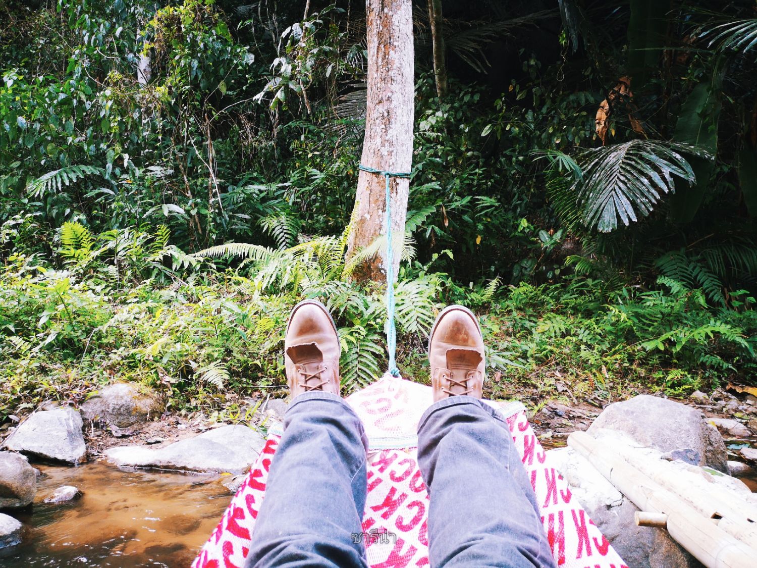 จริง ๆ เช้าวันที่ 2 เราต้องตื่นแต่เช้าไปเดินป่า แต่ปรากฎว่า...เป็นเราซะเองที่ตื่นสาย เลยย้ายแผนไปเก็บผักกูดมาทำกับข้าวแทน และไปเล่นน้ำตกที่นั่นก่อนจะกลับมายังที่พัก (พ่อทองน่ารักมาก เตรียมข้าวเช้าให้เราด้วย) เรากลับมาถึงที่นี่ตอนประมาณ 11 โมง เวลายังเหลือ เลยขอไปนั่งเล่นเปลที่แกว่งอยู่ตรงลำธารอีกครั้ง และที่สำคัญที่ขาดไม่ได้เลย ถ่ายรูปตัวเองด้วยตัวเอง ฮ่า ๆ ก่อนที่จะอาบน้ำเก็บข้าวของและโบกมือลาพ่อทอง แม่ แดงกับต๊อบ รวมทั้งอยู่เถื่อน