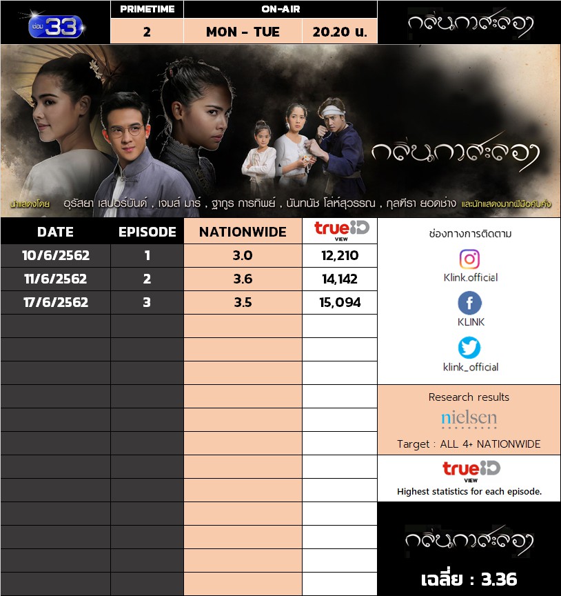 สรุปเรตติ้งละครช่อง 3 | กลิ่นกาสะลอง - เพลิงนาคา - เพลิงพรางเทียน(ตอนจบ) - หนี้รักในกรงไฟ (อัพเดต 18/6/2562)