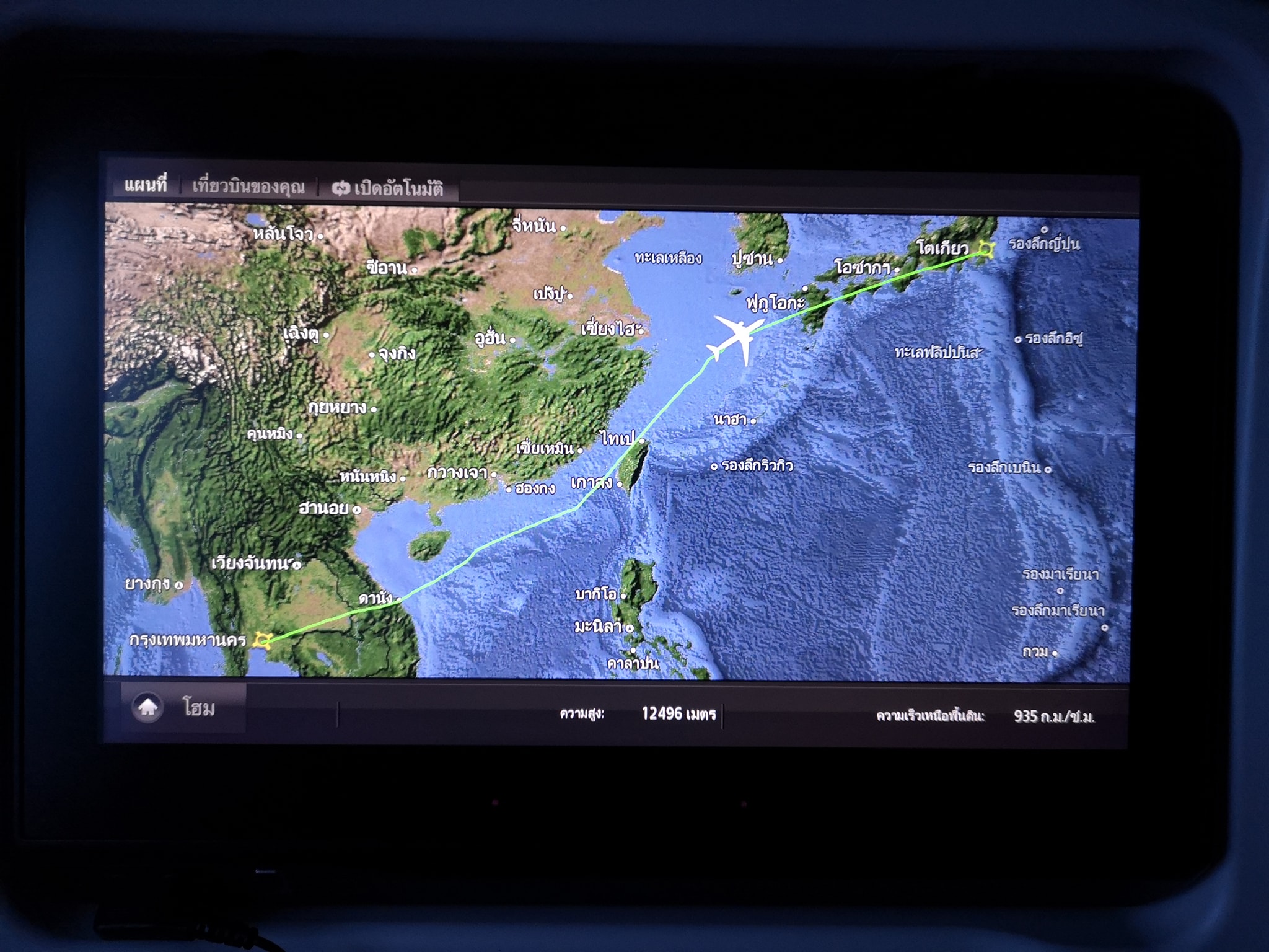 ทานอาหารเสร็จ เปิดจอดูก็คิดว่าคงใช้เวลาไม่นานก็ถึงแล้วครับ เลยดูหนังรอไปพลาง ๆ กะว่าใกล้ถึงฟูจิซังแล้วค่อยเตรียมตัวถ่ายรูป