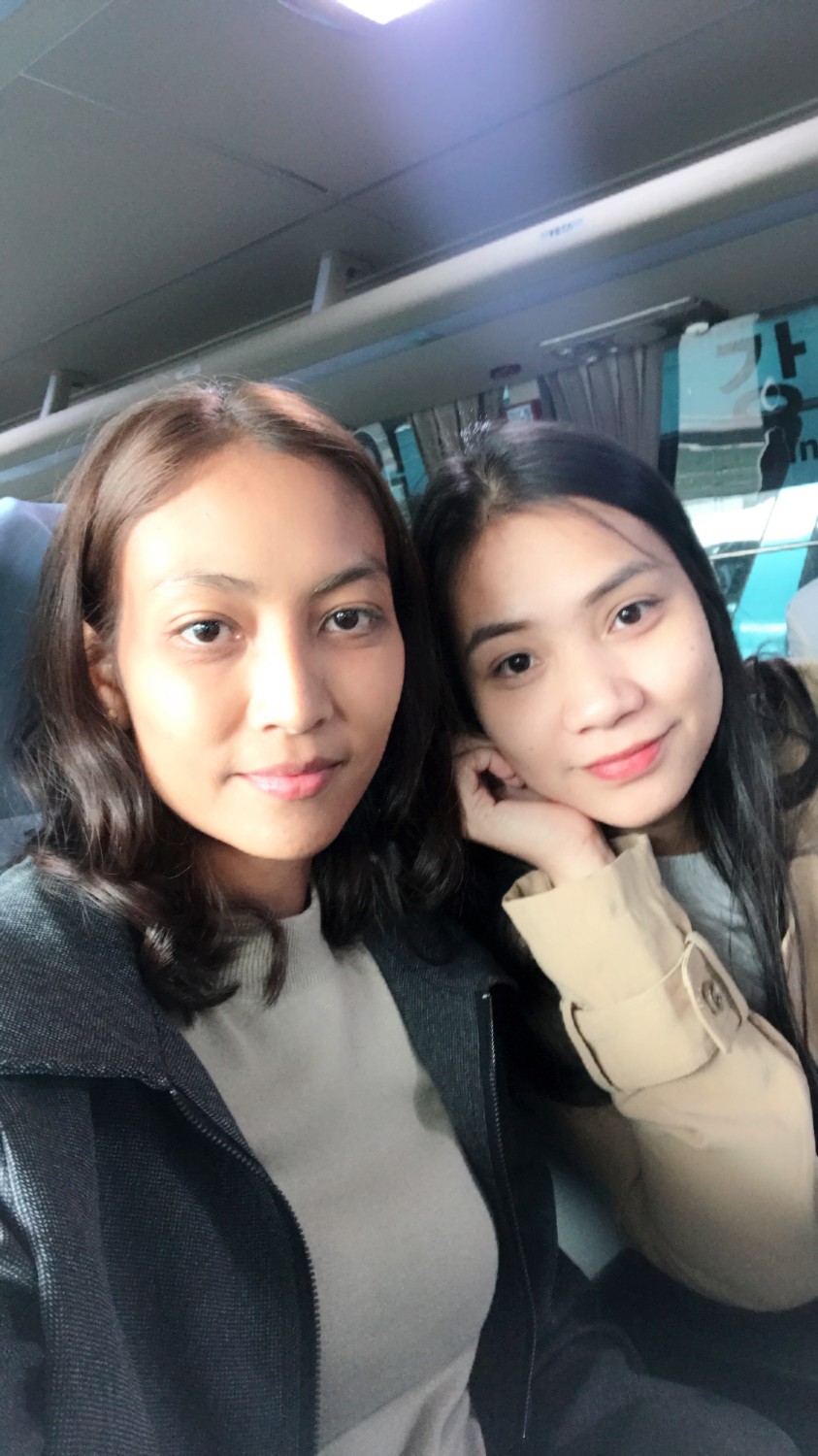 เราใช้เวลานั่งรถมาประมาณ 1 ชม รู้สึกว่าเร็วเพราะเราเพลิดเพลินกับบรรยากาศรอบข้าง พอลงรถก็ถึงเวลา งง งงแบบจะเอาไงต่อดี มันเป็น4 แยกที่เราเองไม่รู้ด้วยซ้ำว่าคือที่ไหน โรงแรมเราอยู่ตรงไหน เราลงที่ Sinsa bus station เราก็เปิด google map ข้ามถนนอยู่ในแยกนั้น ประมาณครึ่งชม พร้อมกระเป๋าที่หนัก เกือบ20กิโล รู้สึกลำบากมาก จะถามใคร เค้าก็โบกมือว่า ฉันพูดอังกฤษไม่ได้ อย่ามาถามฉัน ประมาณนั้น โชคดีที่มี internet sim เลยพอได้เช็คข้อมูลใน internet ได้ แต่มันก็ยังช่วยอะไรไม่ได้มาก และเราก็เจอผู้หญิงวัยรุ่นที่ดูเหมือนจะพูดภาษาอังกฤษได้ นางก็ช่วยหาโรงแรม แต่ก็ไม่เจอ ในgoogle map ก็คือมั่วมาก สุดท้ายเลยตัดสินใจกับเพื่อนว่า ไม่ไหวละ นั่งแท็กซี่ดีกว่า พอเอาชื่อโรงแรมให้แท็กซี่ดูเค้าก็ชี้ไปข้างหน้า เราก็แบบ มองหาตั้งนานไมไม่เจอวะ อยู่แค่ข้างหน้านี่เอง แต่จะเดินเข็นกระเป๋าก็ไม่น่าไหว เพราะบ้านเค้า ถนนหนทางเป็นแบบเชิงเขา ค่อนค้างชัน คนขับแท็กซี่เองไม่ค่อยอยากไปเพราะมันใกล้ เราก็บอกเค้าว่าเข็นกระเป๋าไม่ไหวจริงๆ เค้าคงสงสารเลยไปให้ ค่าแท็กซี่ 3500 won