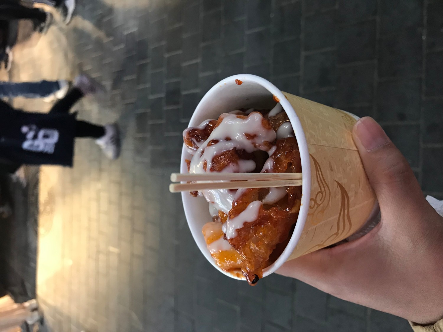 อันนี้ก็เป็นไก่เปรียวหวาน ราคา 5000 วอน ถือว่าแพง ไม่คุ้มราคา แข็ง เย็น ไม่ค่อยอร่อย