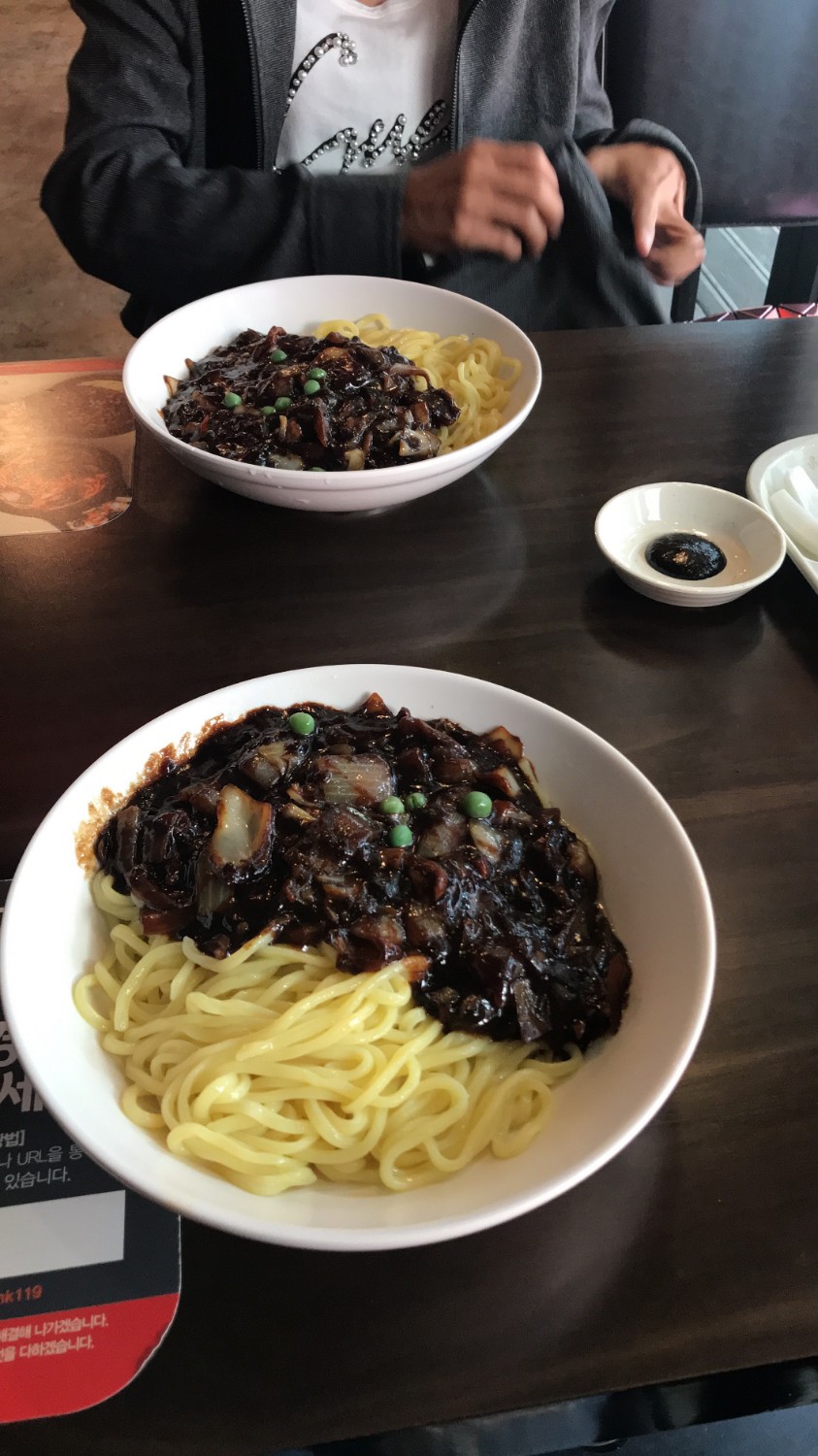หาแต่ที่กิน อยากกินจาจังเมียนมาก เห็นแต่ในซีรีย์เกาหลี เดินตรง gangnam walking street แถวนั้นร้านอาหารเยอะมากๆ