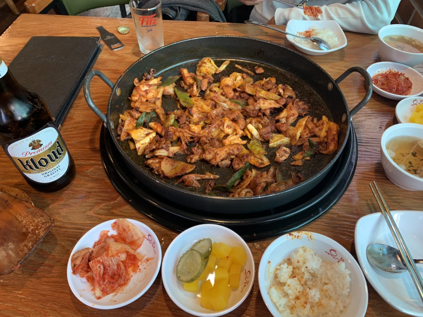 คือเอาจริงๆจำชื่อร้านไม่ได้ ร้านจะอยู่บนชั้น 2 ก็งงๆ เดินเข้าไป พนักงานหล่อมากกกก 5555 ที่นี่เค้านิยมกินเบียร์กันตลอดเวลา เราเองก็กินได้ทุกวันเหมือนกัน เหมือนสวรรค์ กินได้ตลอดเวลาซื้อได้ทุกเวลาด้วย อาหารที่นี่จะซ้ำกันแทบจะทุกร้าน มี 30 ร้าน 25 ร้านจะเป็นผัดๆแบบนี้ ซึ่งก็แน่นอนว่าเรากินแบบนี้ทุกวัน แต่ก็อร่อยนะ ราคามื้อนี้ก็ 10,500 วอน ต่อคน
