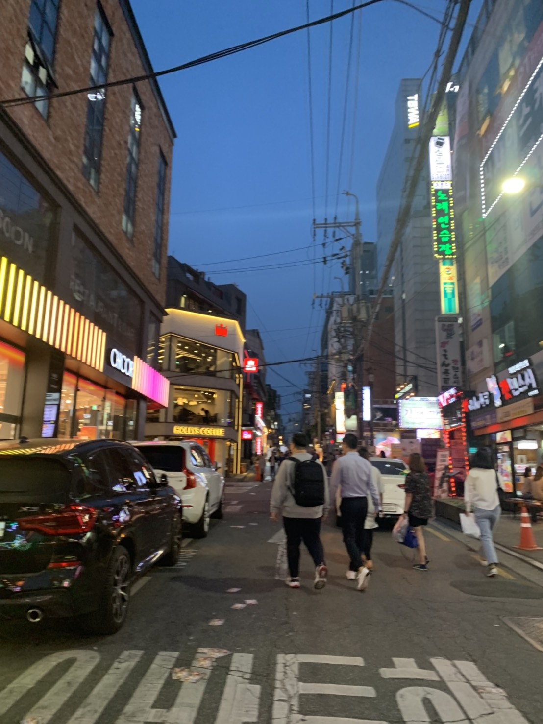 ถนนย่านนี้ค่อนค่างหรูหรา และมีทุกอย่าง ถ้าใครมาเกาหลี แนะนำให้มาพักย่านนี้ สะดวกสะบายมาก