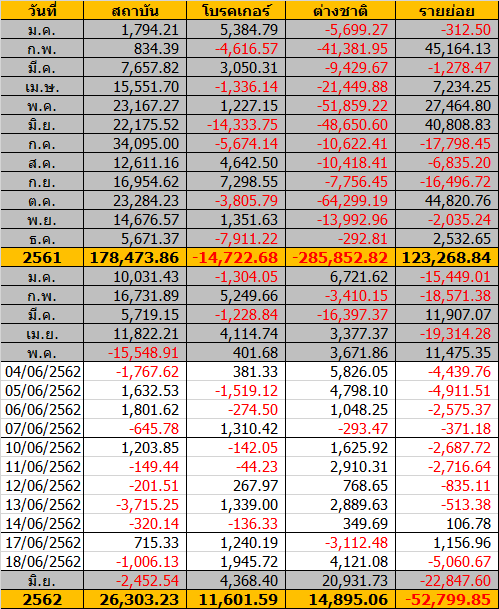 Sinthorn Summary 18/6/2562 : ต่างชาติซื้อสุทธิ 4,121.08 ลบ.