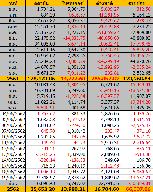 Sinthorn Summary 19/6/2562 : ต่างชาติซื้อสุทธิ 1,809.62 ลบ.