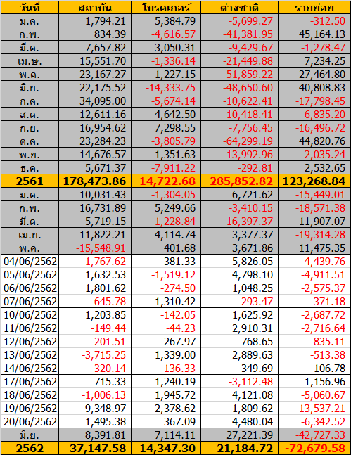 Sinthorn Summary 20/6/2562 : ต่างชาติซื้อสุทธิ 4,480.04 ลบ.